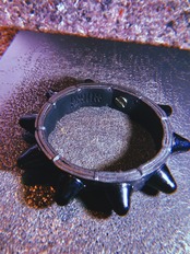 こちらは『艶ありブラック』の鋲で構成しており、ヌラッと光るその様は心に潜む"危うさ"を表現するのにもってこいのアイテム。
